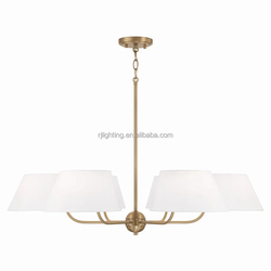 Modern Brass Chandelier com 4 6 8 White Shade Fancy Lights Iluminação decorativa para casa e escritório Disponível em tamanho médio